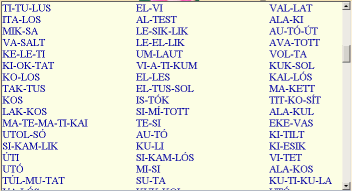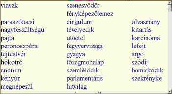 Szabályos sorozat (sorsolás ki) esetén a szóhalmaz rendezett. A navigátor csúszka bal szélsõ pozíciójától a jobb szélsõig - kezdõbetûik szerint - az alábbi rendben sorakoznak a szavak a generált készletben: