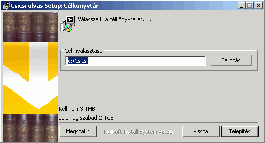 Az átmeneti könyvtárba letöltött telepítõ varázslót elindítva, a