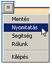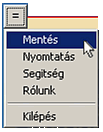 felsõ sarokban található "=" gomb megnyomása után legördülõ menü