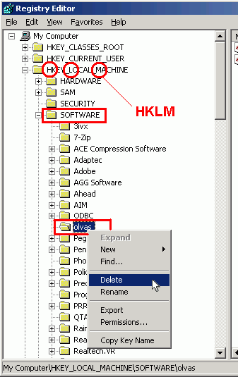 HKLM\SOFTWARE\olvas HKLM\SOFTWARE\Microsoft\Windows\CurrentVersion\Uninstall\Csicsi]
