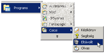 A 2.3.3 pontban leírt registry, és start menü bejegyzések automatikusan törlõdnek.